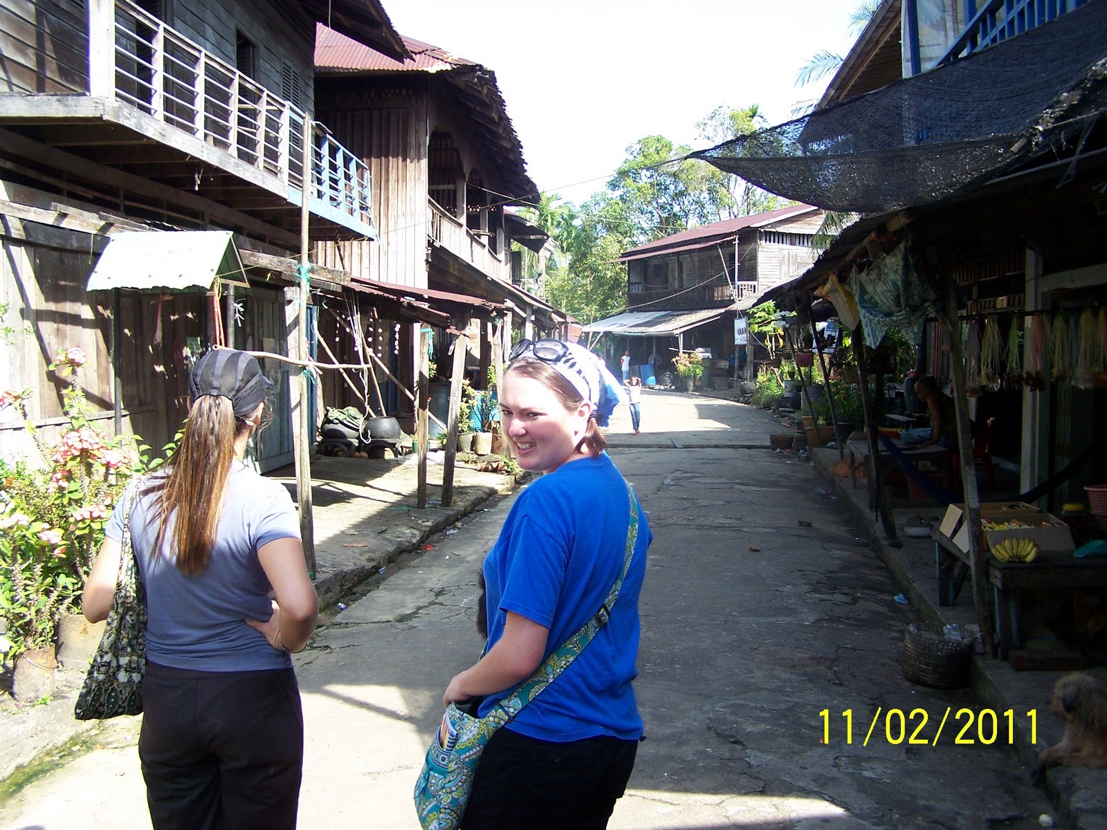 As we walked through the village, it felt a little like being in an old Western town. There were concrete walkways, which Lynette said was most likely from Thai people who had lived there some time ago before being run off. The buildings were taller, and many had the roofs and porches like the old Western style buildings. As I said, on one side there were shacks built right on the water, but behind the homes on the other side was pure jungle going up a large hill. This is where these people believe the spirits live. They had small pots along the walkway in which they burn things to please the spirits and invite them in.
