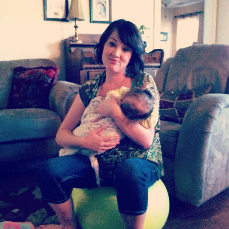 This is how we spend much of our time these days… yes, that’s right, bouncing on an exercise ball! Of all of the things that I’ve done to calm crying babies, I never would have imagined using an oversized bouncy ball. But for Harper, this does the trick! For some reason that motion settles her like nothing else we do… so, we bounce. And Mommy gets to work her core and legs at the same time- double blessings!