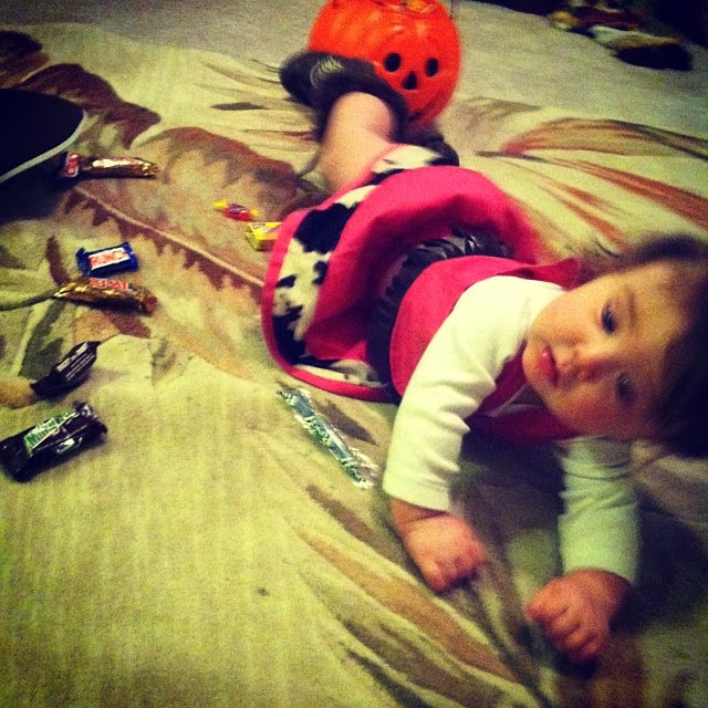 | And she dumped her candy in the floor and proceeded to roll in it. |